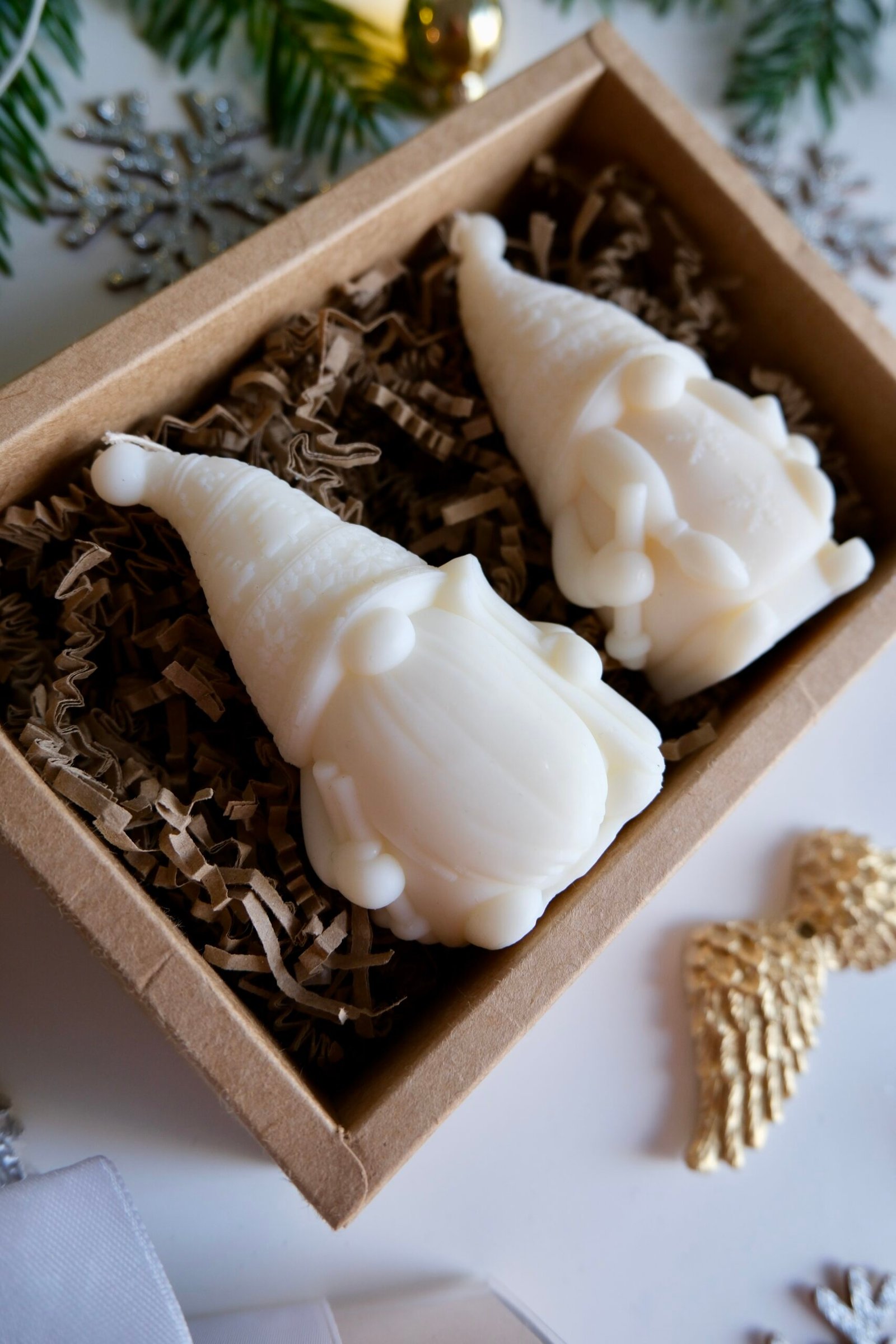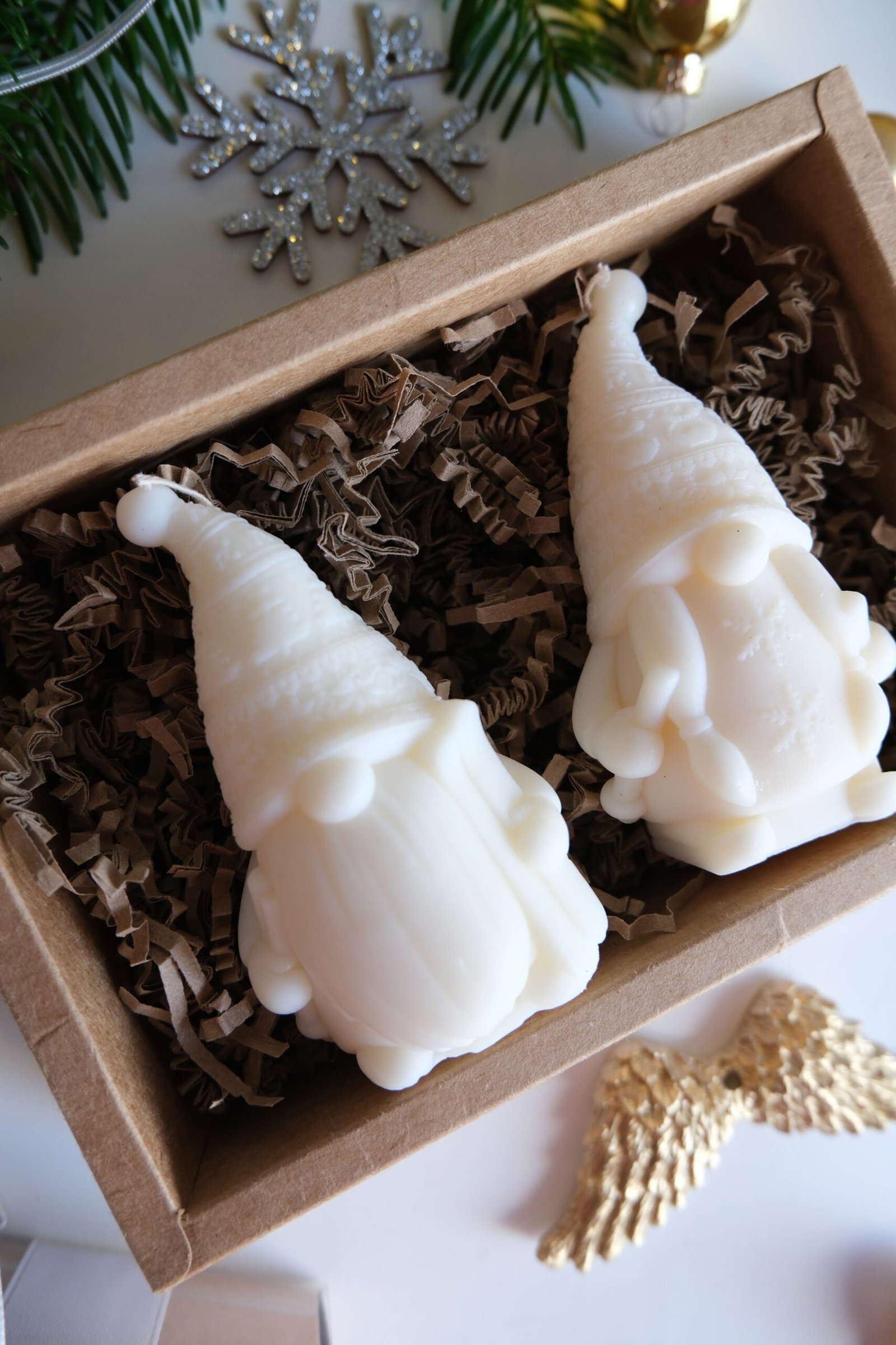 Eko box ze świecami zapachowymi to propozycja dla osób, które cenią zarówno naturalne piękno, jak i elegancki minimalizm. W zestawie znajdują się dwie świece wolnostojące o wysokości 10 cm, wykonane ręcznie z naturalnego wosku sojowego. Ich kształt inspirowany zimowymi skrzatami wprowadza do wnętrza ciepły, przytulny nastrój. Co więcej, świece pachną bez palenia, dlatego są idealne nawet do biura czy hotelowego lobby.