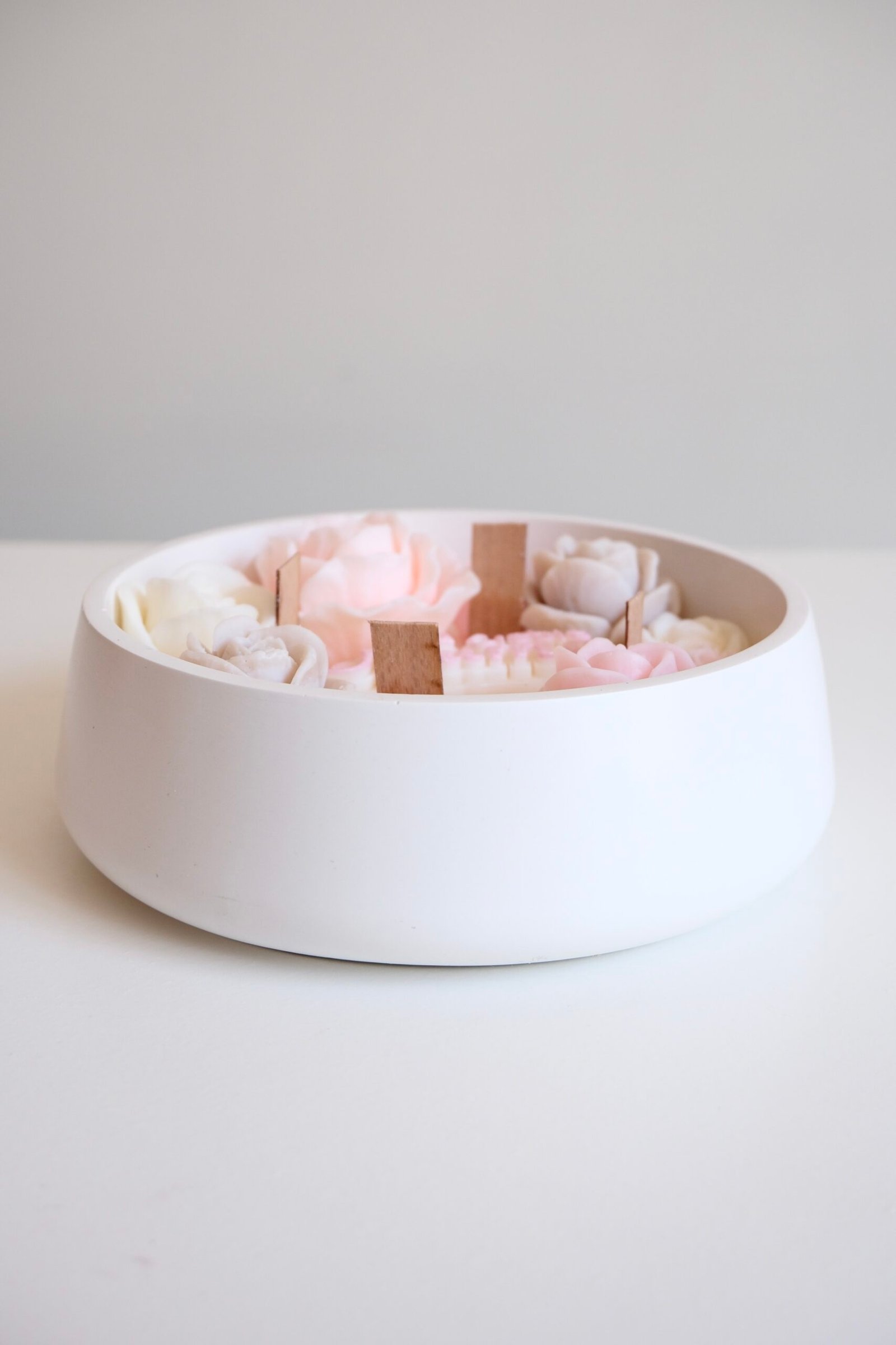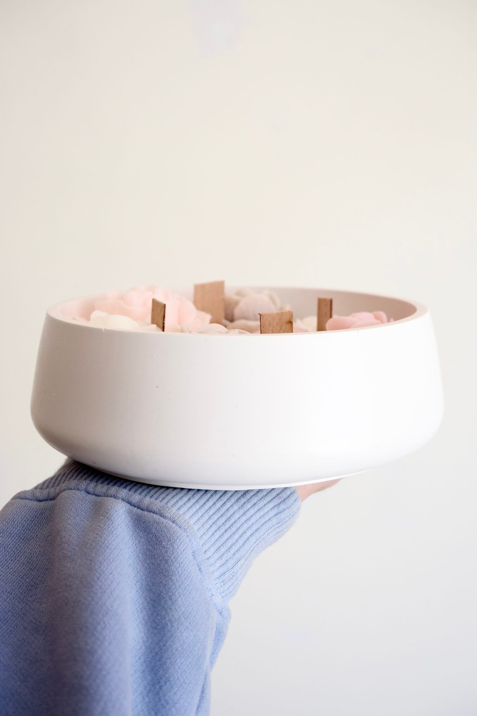 Pojemnik wykonujemy ręcznie z gipsu polimerowego w naszej pracowni. Każdy egzemplarz jest unikalny i dopracowany w najmniejszym detalu. Minimalistyczna forma oraz delikatna kolorystyka sprawiają, że świeca doskonale pasuje do nowoczesnych i klasycznych wnętrz. Co więcej, po wypaleniu świecy pojemnik możesz wykorzystać ponownie – na biżuterię, kosmetyki lub drobiazgi.