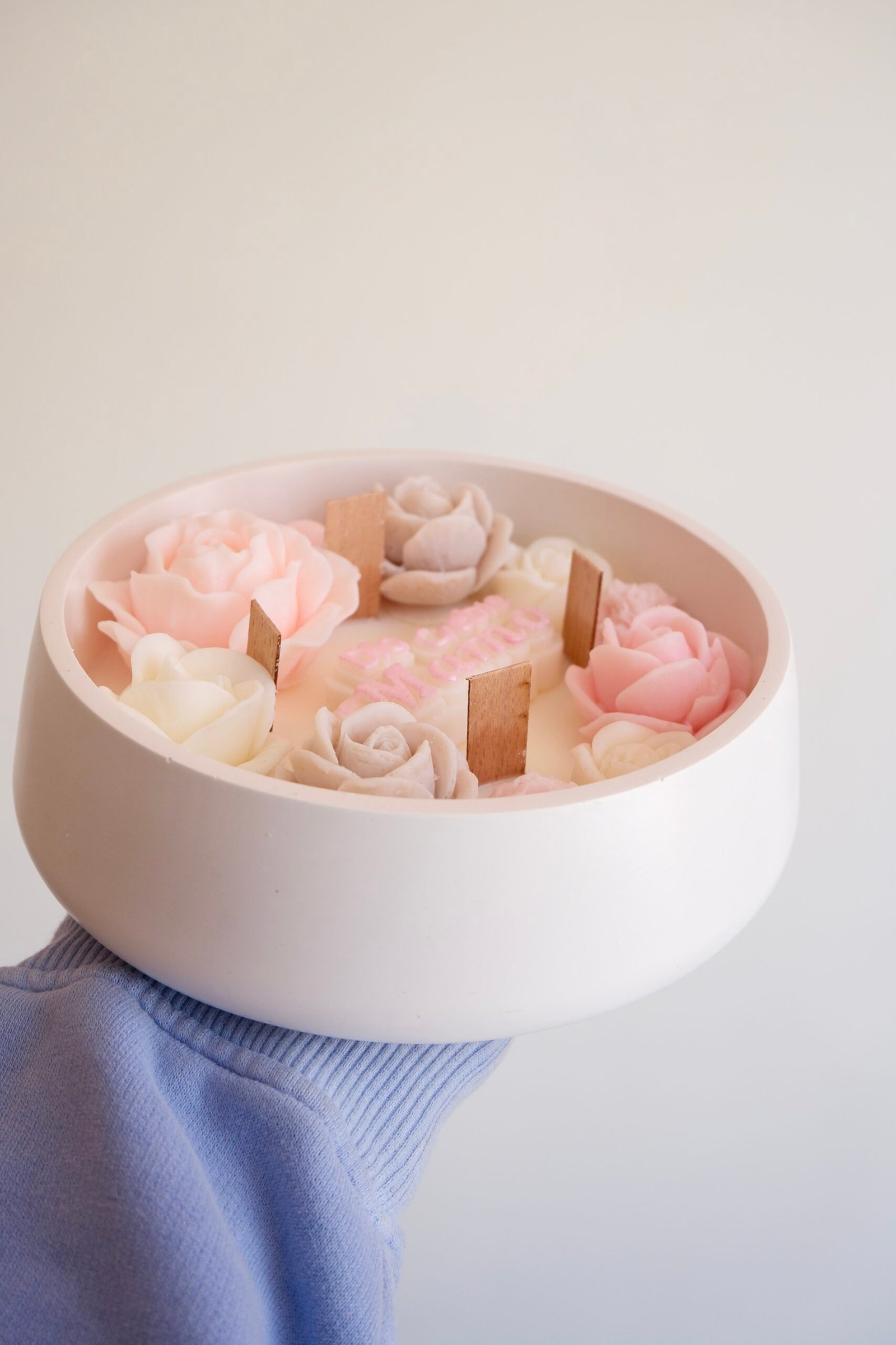 Elegancka świeca na Dzień Mamy z kwiatami 3D to wyjątkowy prezent, który łączy piękno, emocje i funkcjonalność. Jeśli szukasz alternatywy dla klasycznych kwiatów, ta kompozycja będzie idealnym wyborem. Ręcznie wykonane kwiaty z wosku tworzą efekt trójwymiarowego bukietu, który zachwyca od pierwszego spojrzenia. Co ważne, taka dekoracja nie zwiędnie i pozostanie z Mamą na długo.