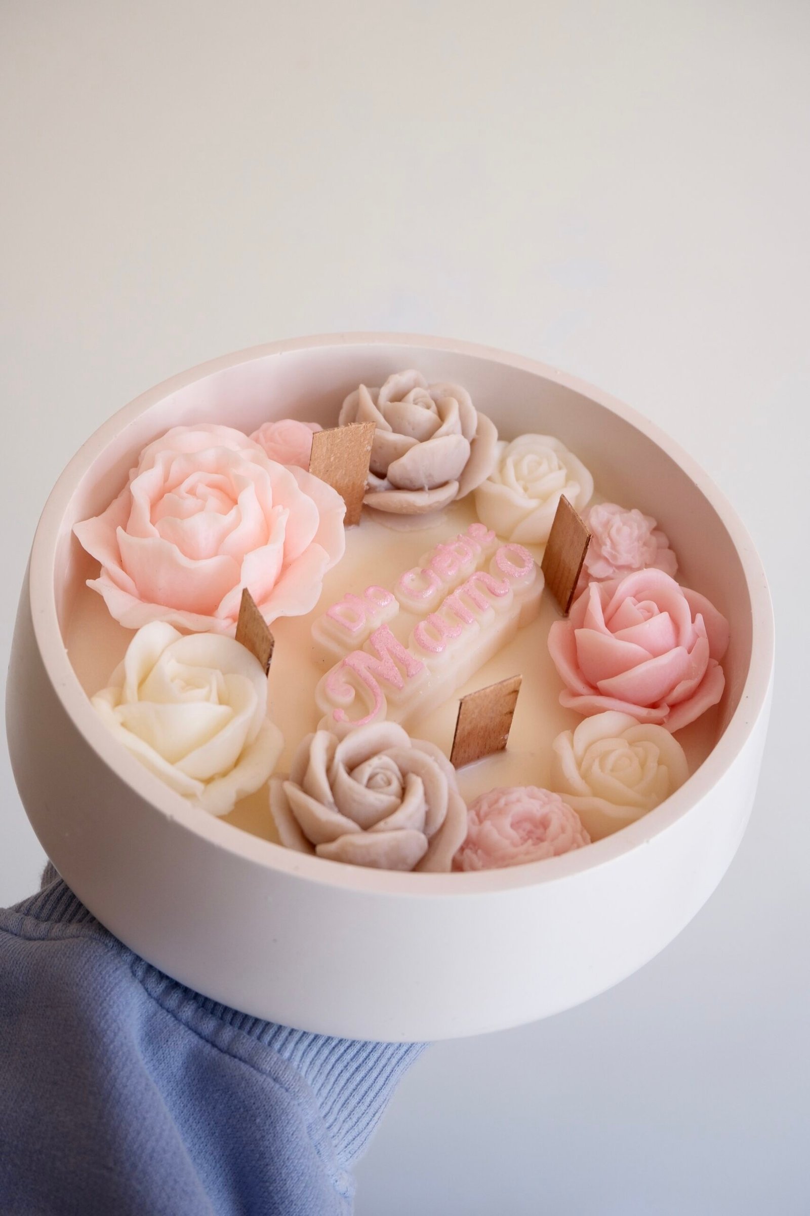 Elegancka świeca na Dzień Mamy z kwiatami 3D – prezent premium