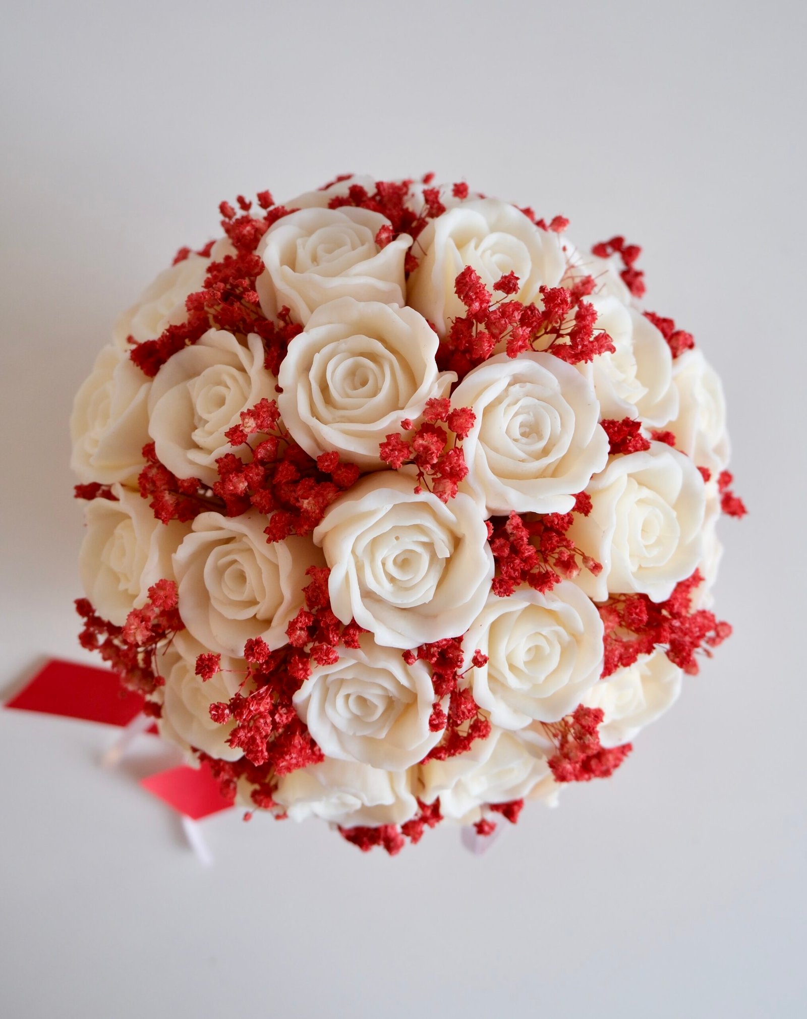 Róże wykonane są z naturalnego wosku sojowego i nie posiadają knotów, dlatego przeznaczone są do stosowania w kominku zapachowym z podgrzewaczem. W efekcie wosk delikatnie się rozpuszcza, stopniowo uwalniając aromat i tworząc przyjemną, nastrojową atmosferę. Dodatkowo zastosowanie stabilizowanej gipsówki sprawia, że kompozycja przez długi czas zachowuje swój nienaganny wygląd.