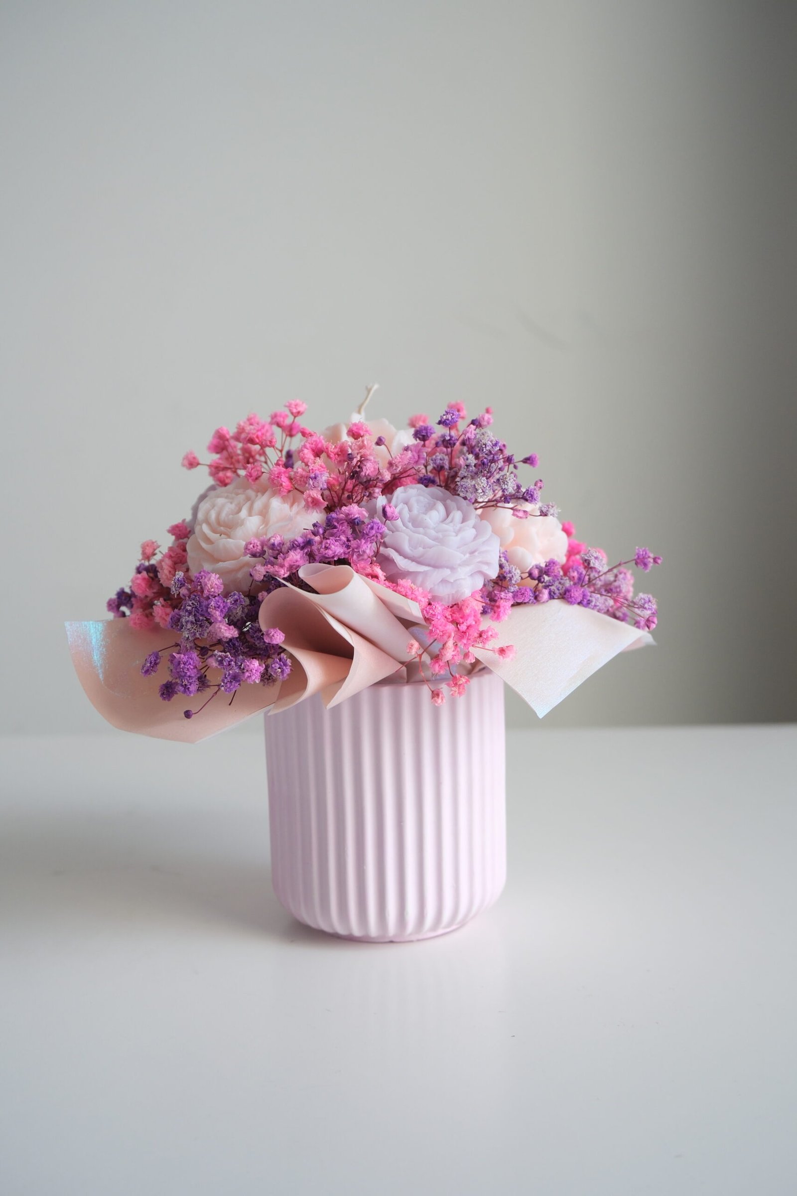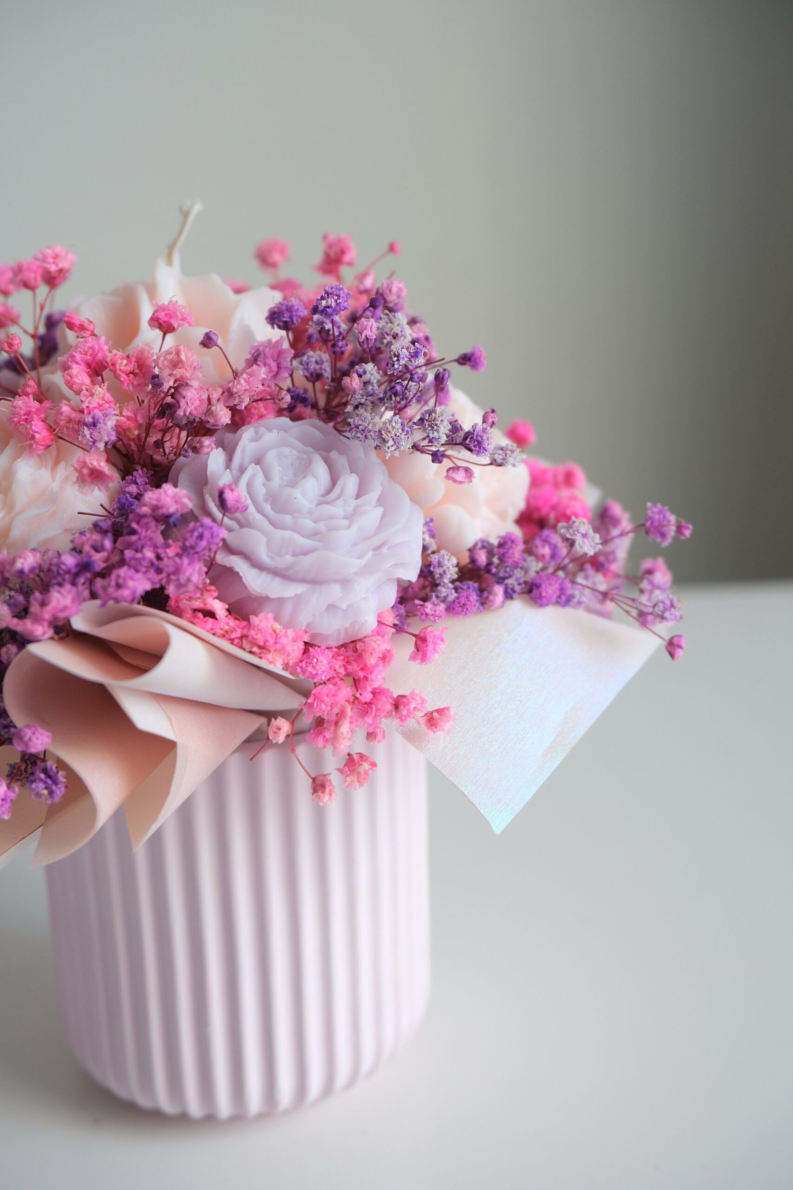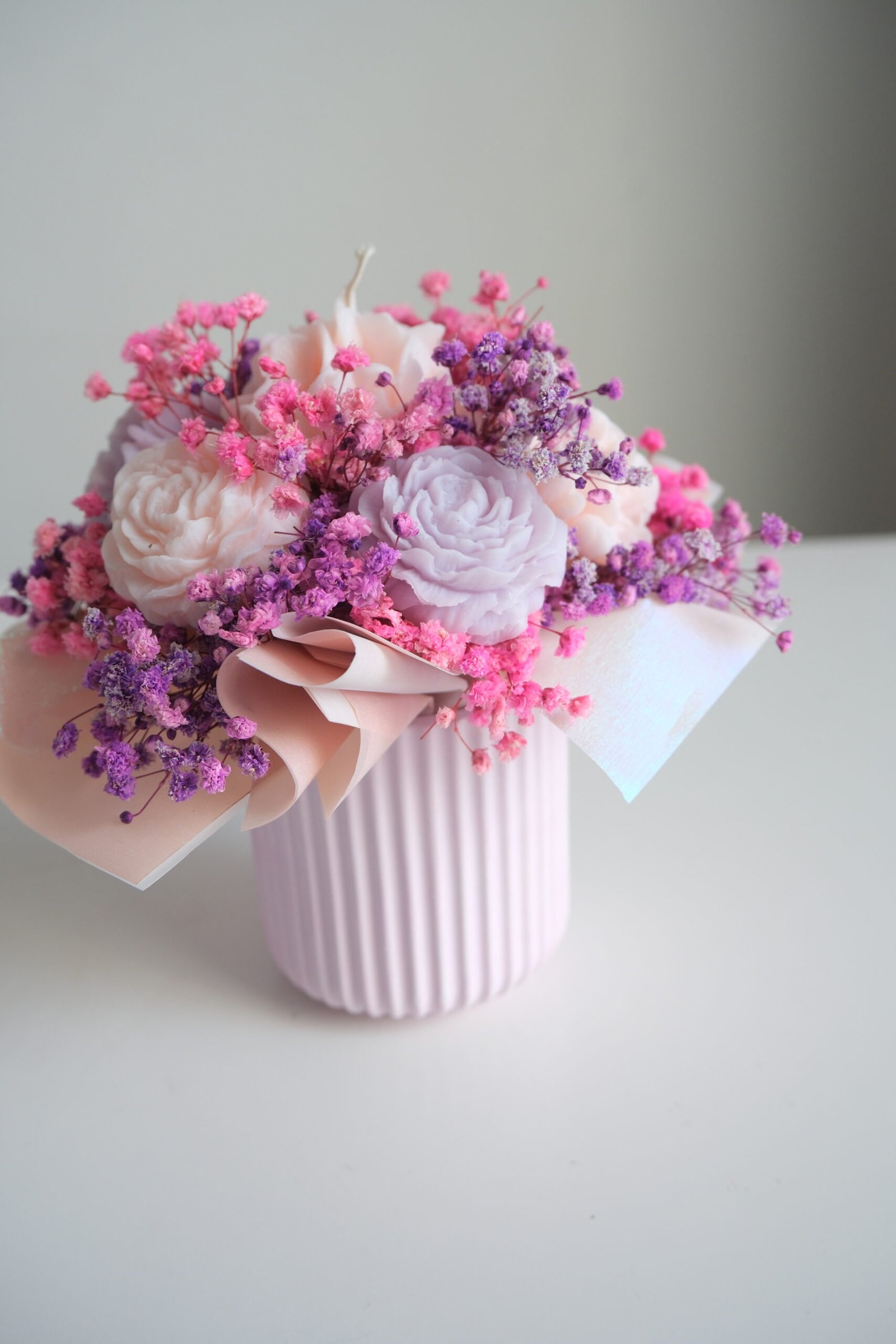 Kompozycje ze świec sojowych od Lubowski łączą estetykę, zapach oraz ręczne wykonanie. Starannie dopracowane detale sprawiają, że przypominają prawdziwe bukiety, jednak nie więdną i mogą cieszyć przez wiele miesięcy.