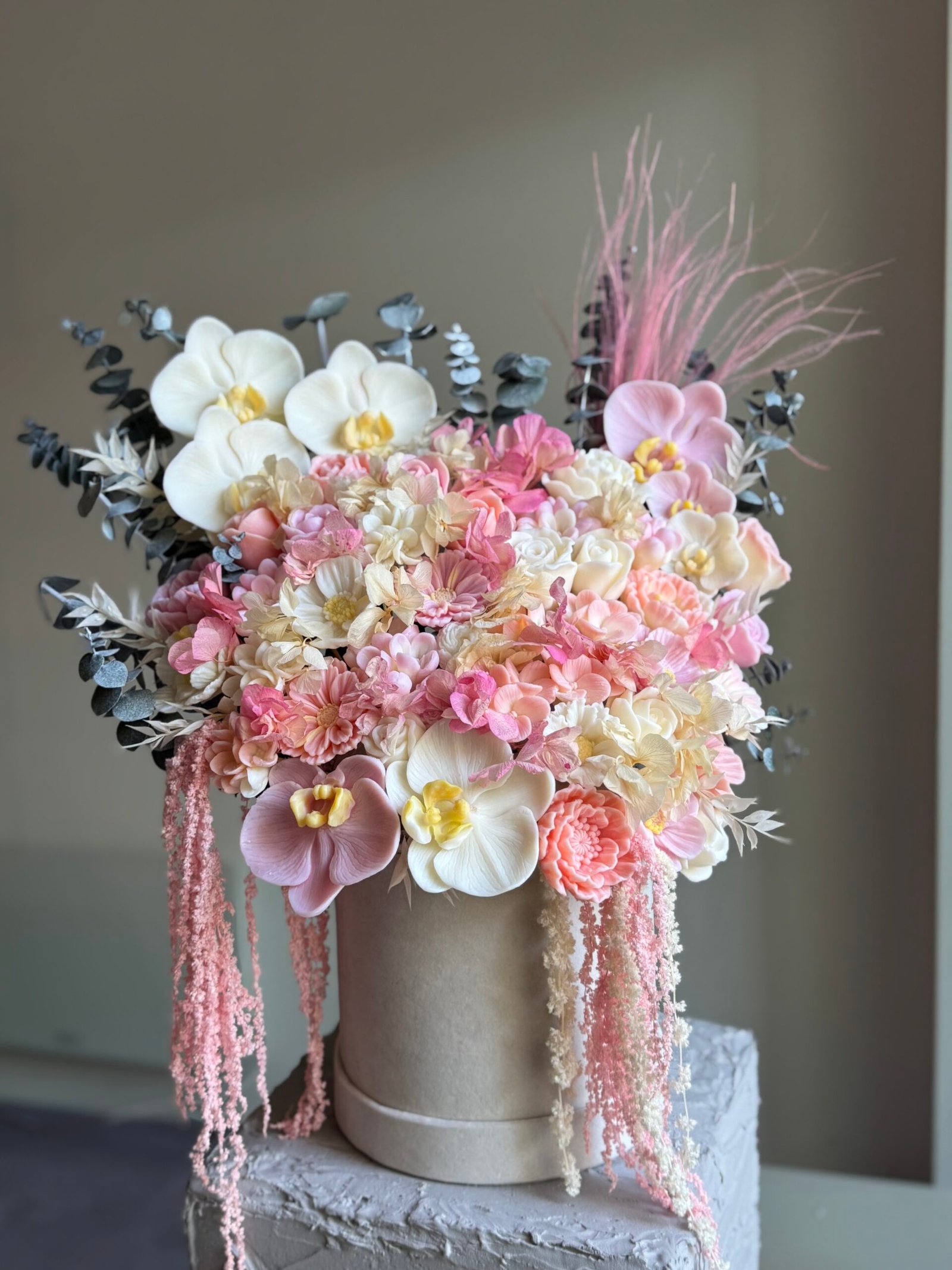 Każdy szczegół ma znaczenie – od kolorów, przez proporcje, po starannie dobrane kwiaty ze świec, które przyciągają wzrok i pozostają w pamięci. Wybierając ten flower box, podarujesz coś więcej niż prezent – ofiarujesz emocje, piękno i luksus zamknięty w artystycznej formie.