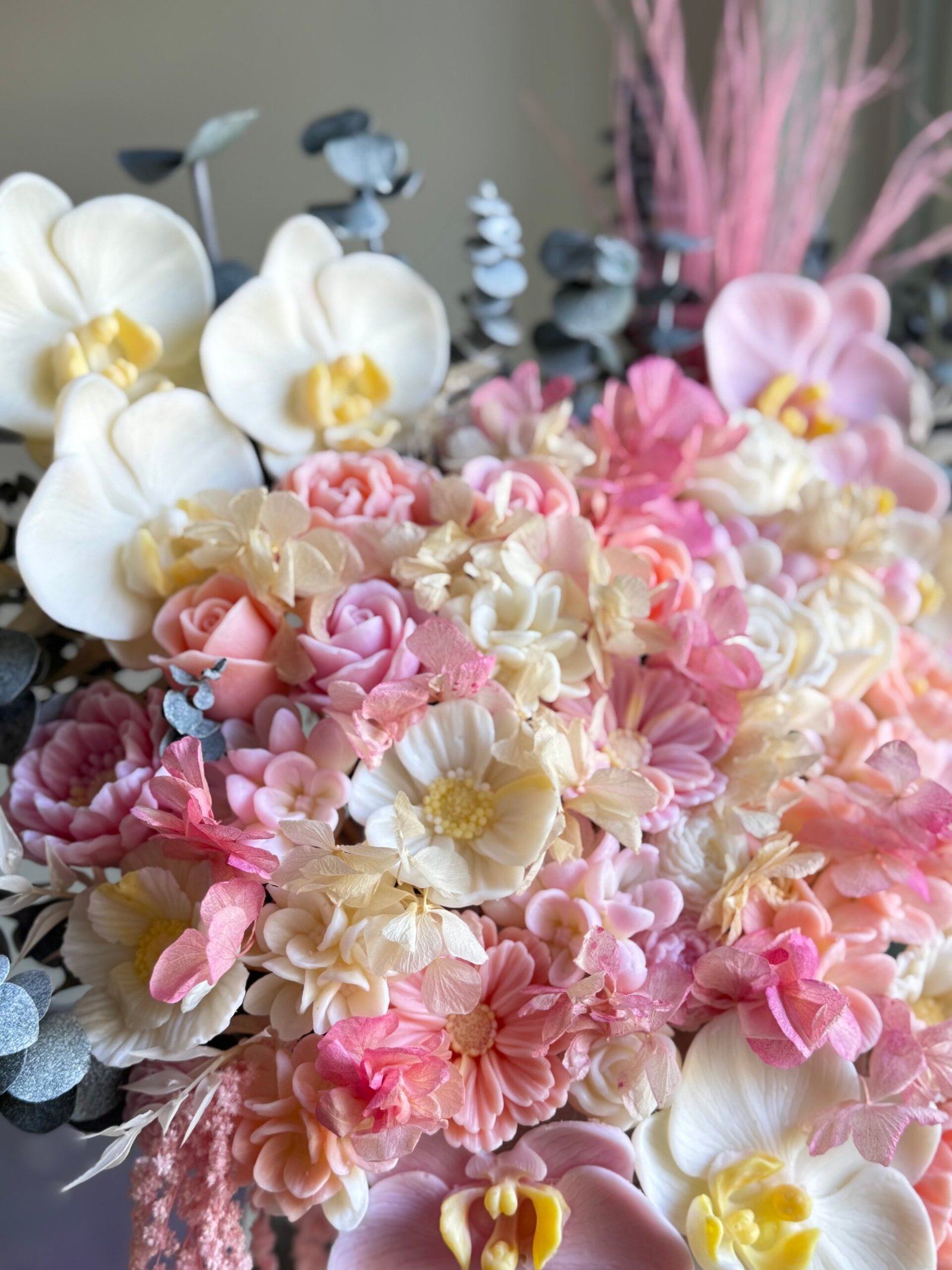 Szukasz prezentu, który zachwyci od pierwszego spojrzenia i stanie się elegancką ozdobą wnętrza? Nasz flower box na prezent urodzinowy to ręcznie wykonana kompozycja świec w formie kwiatów, łącząca luksus, trwałość i niepowtarzalny charakter. Każdy detal tworzony jest z ogromną starannością – od delikatnych płatków róż i piwonii, po wyjątkowe orchidee i subtelne akcenty kolorystyczne. Dzięki temu flower box zachwyca nie tylko wyglądem, ale także delikatnym zapachem, który wprowadza wyjątkową atmosferę.