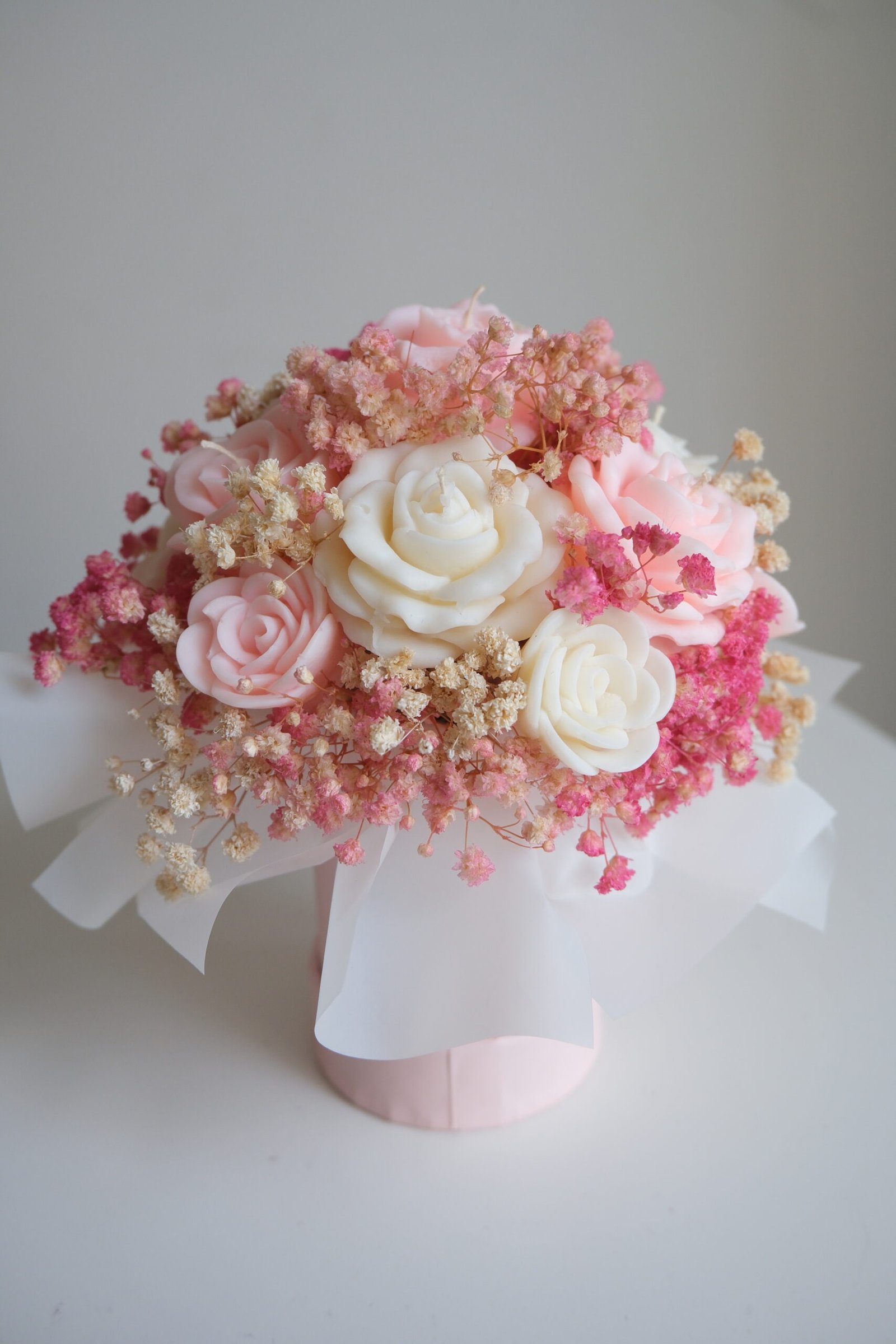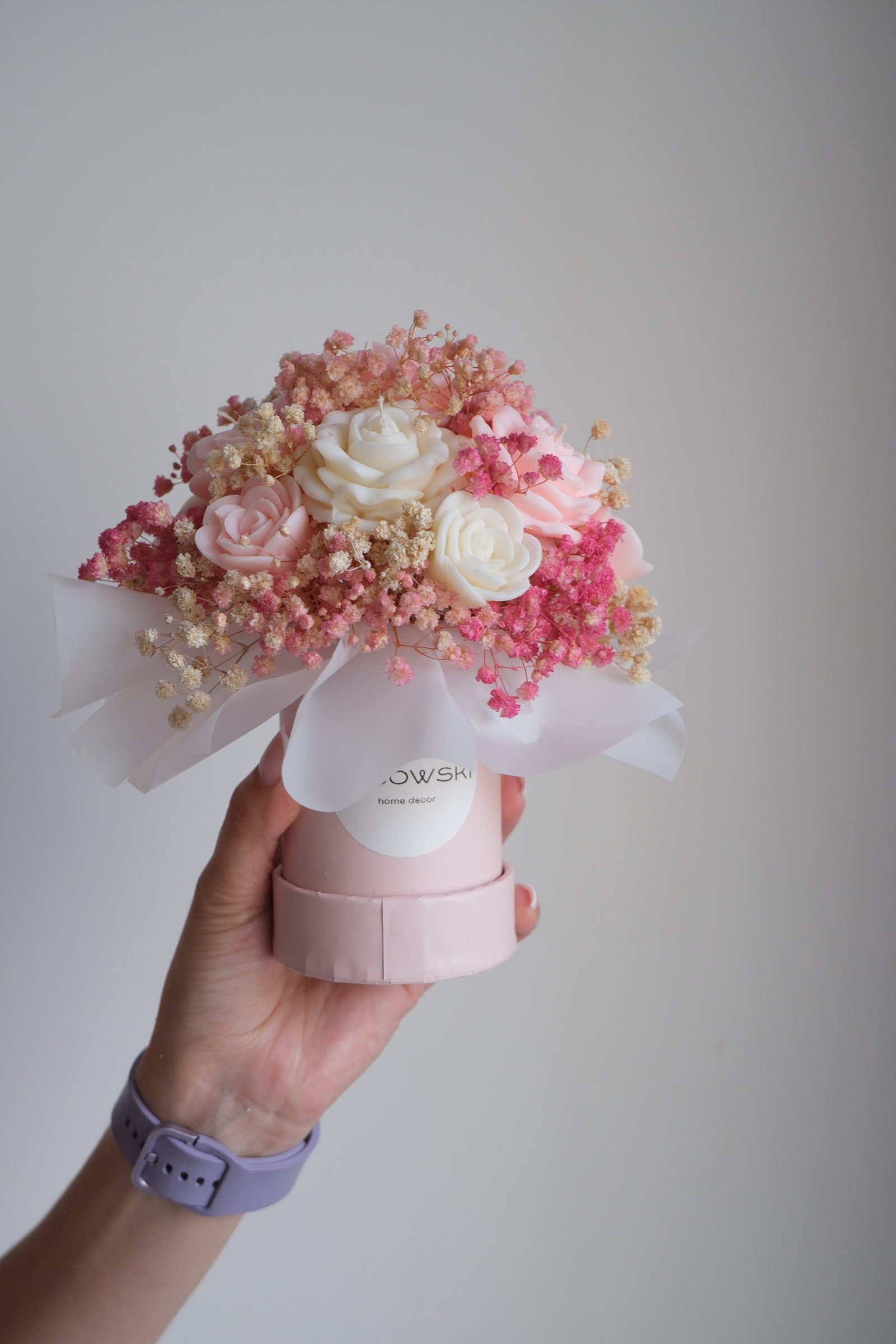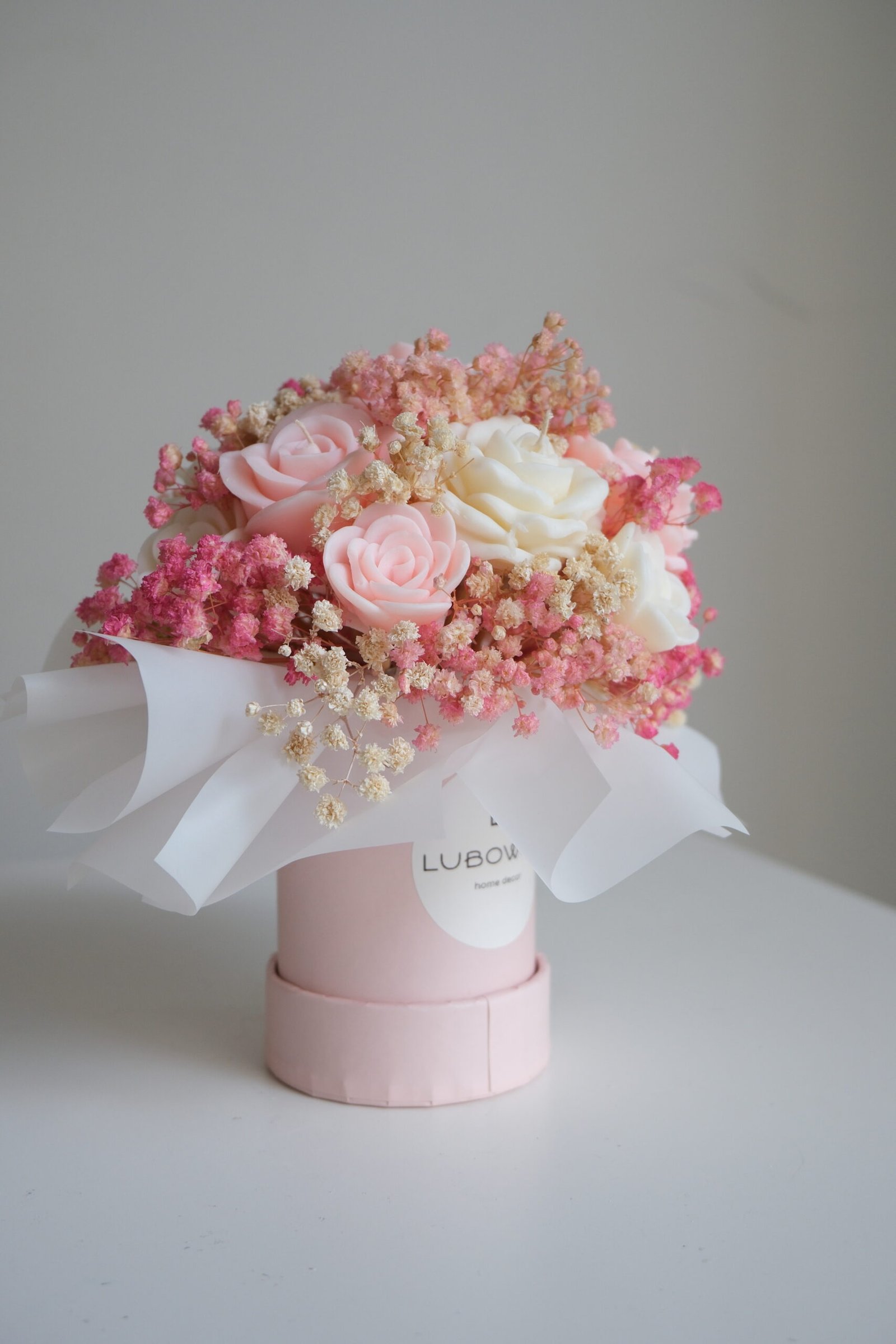 Bukiet wiecznych róż – flower box ze świec sojowych