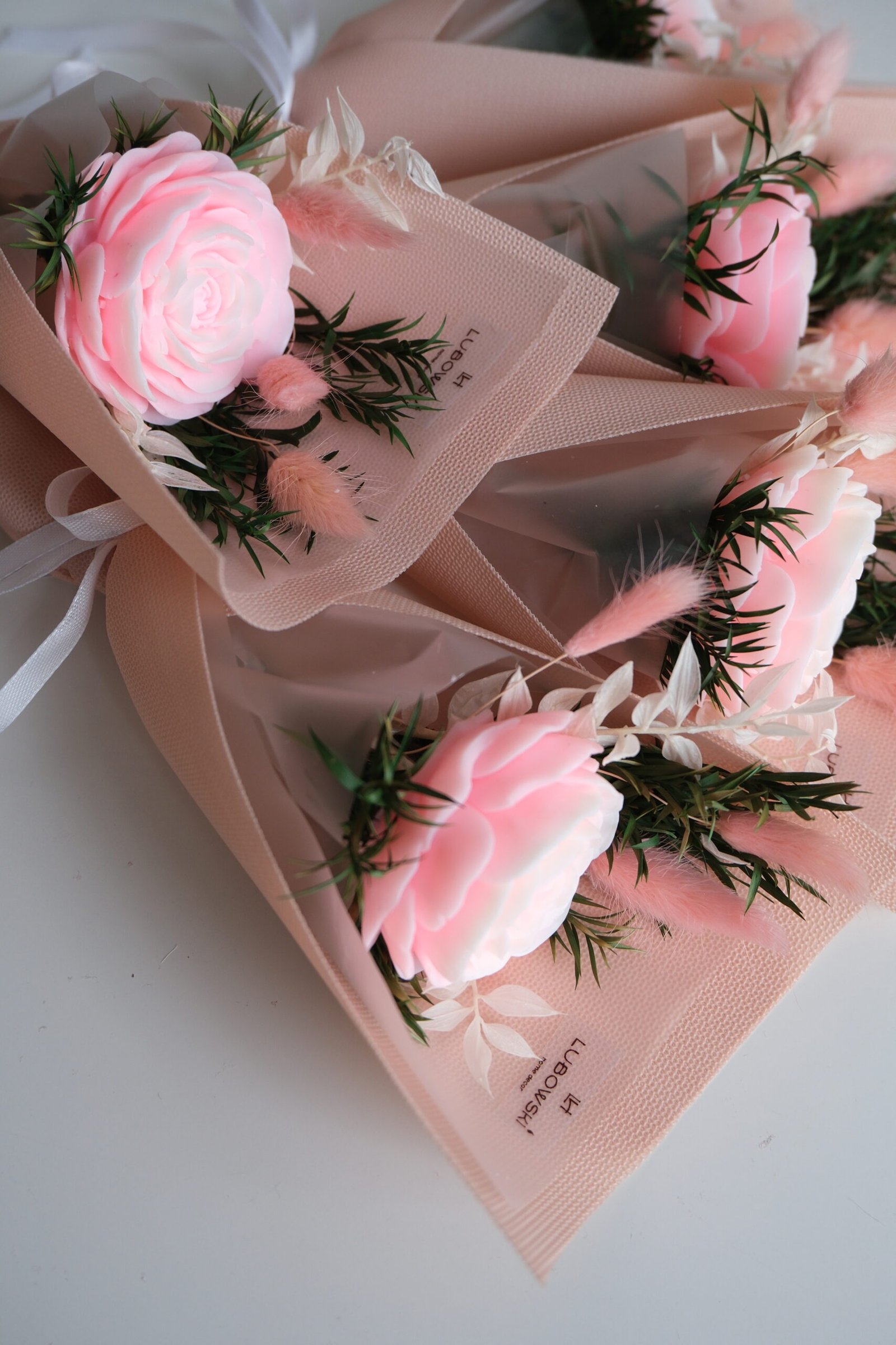 Chcesz podarować swoim bliskim coś naprawdę wyjątkowego? Nasze ręcznie robione podziękowania dla gości w formie mini bukietu łączą elegancję, zapach i trwałość w jednej, subtelnej kompozycji. To dopracowany detal, który podkreśla charakter uroczystości i pozostaje z gośćmi na długo po zakończeniu przyjęcia.