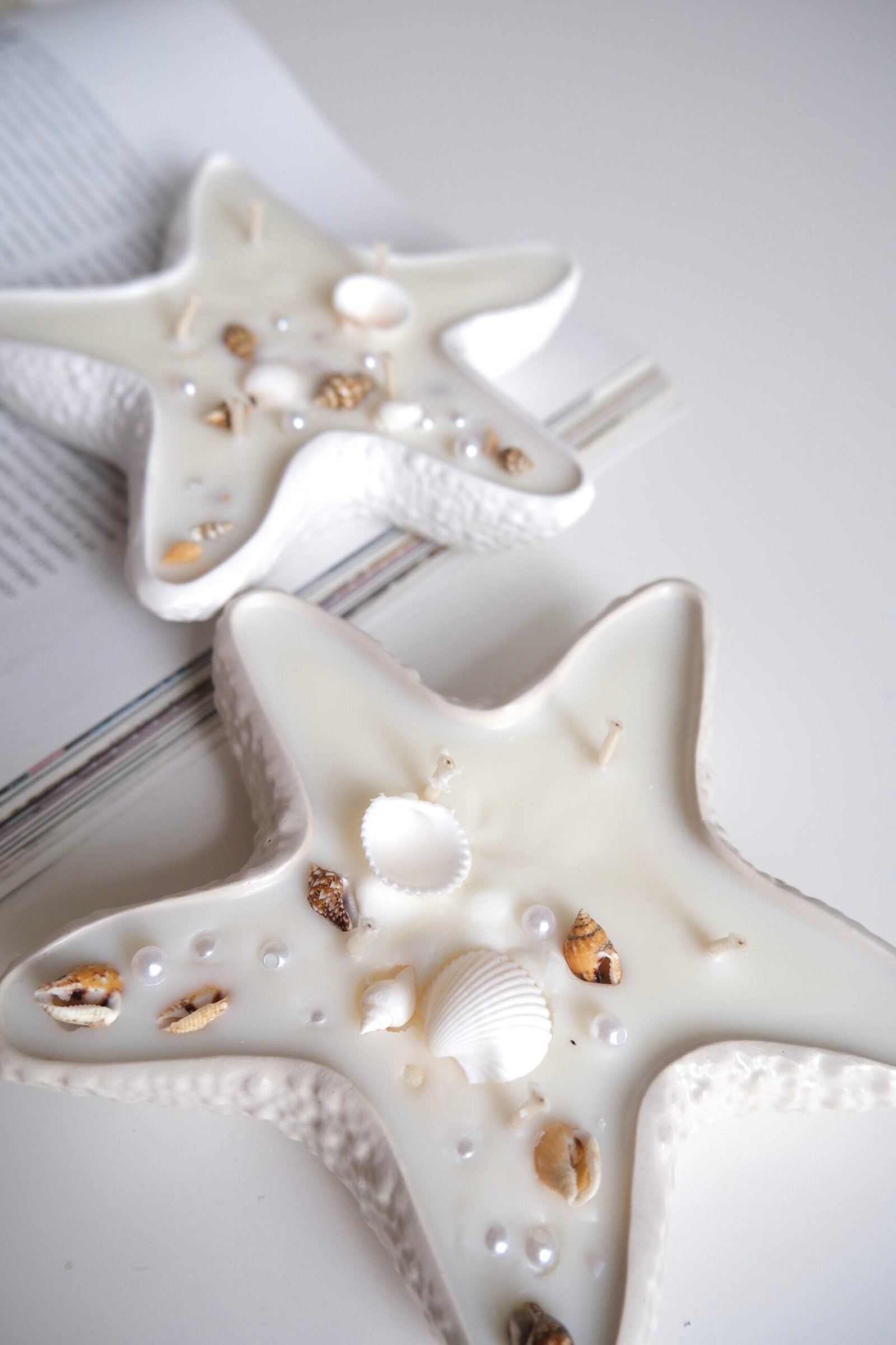 Ręcznie robiona świeca sojowa w stylu morskim – rozgwiazda z gipsu polimerowego